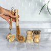 PLASTFRITT RENGJØRINGSSETT I TRE OG NATURFIBER Et stilrent og holdbart rengjøringssett som gjør jobben uten plast og uten riper. Ergonomiske treskaft og naturfiberbust gir effektiv skrubb for oppvask, gryter, flasker og benker – pent nok til å stå framme på kjøkkenbenken.