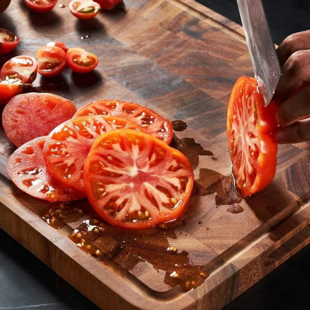 Elegant og robust skjærefjøl i valnøtt som skåner knivene og tåler daglig bruk. Den tette trestrukturen gir stabilitet, naturlig motstand mot fukt – og et tidløst uttrykk på benken.